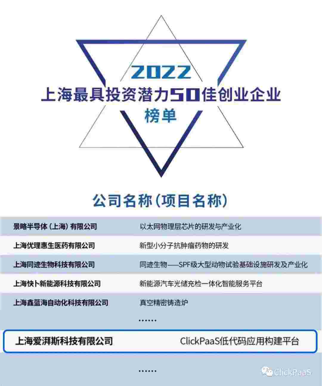 沃钱包 作为国内低代码PaaS平台的领军企业,,与120家创企入围角逐。。期间接受了来自德同资本、、领中资本等知名投资机构的10位投资人组成专家评委团的背靠背盲选。。。。并最终入围“2022上海最具投资潜力50佳创业企业”榜单,,,,被列入“上海市重点培育创业企业库”。。。
