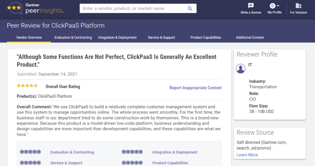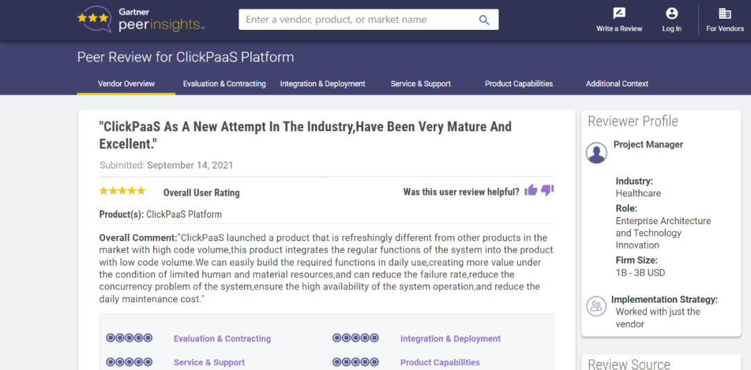 Tips::::【Peer Insights】——用户对企业IT产品和服务发布真实评价的平台。。。目前已有355个市场,,,,255,000条经过验证的评价。。。每一条评价Gartner会针对参评企业营收规模及参评人员信息做验证、、评价内容做多维核实。。